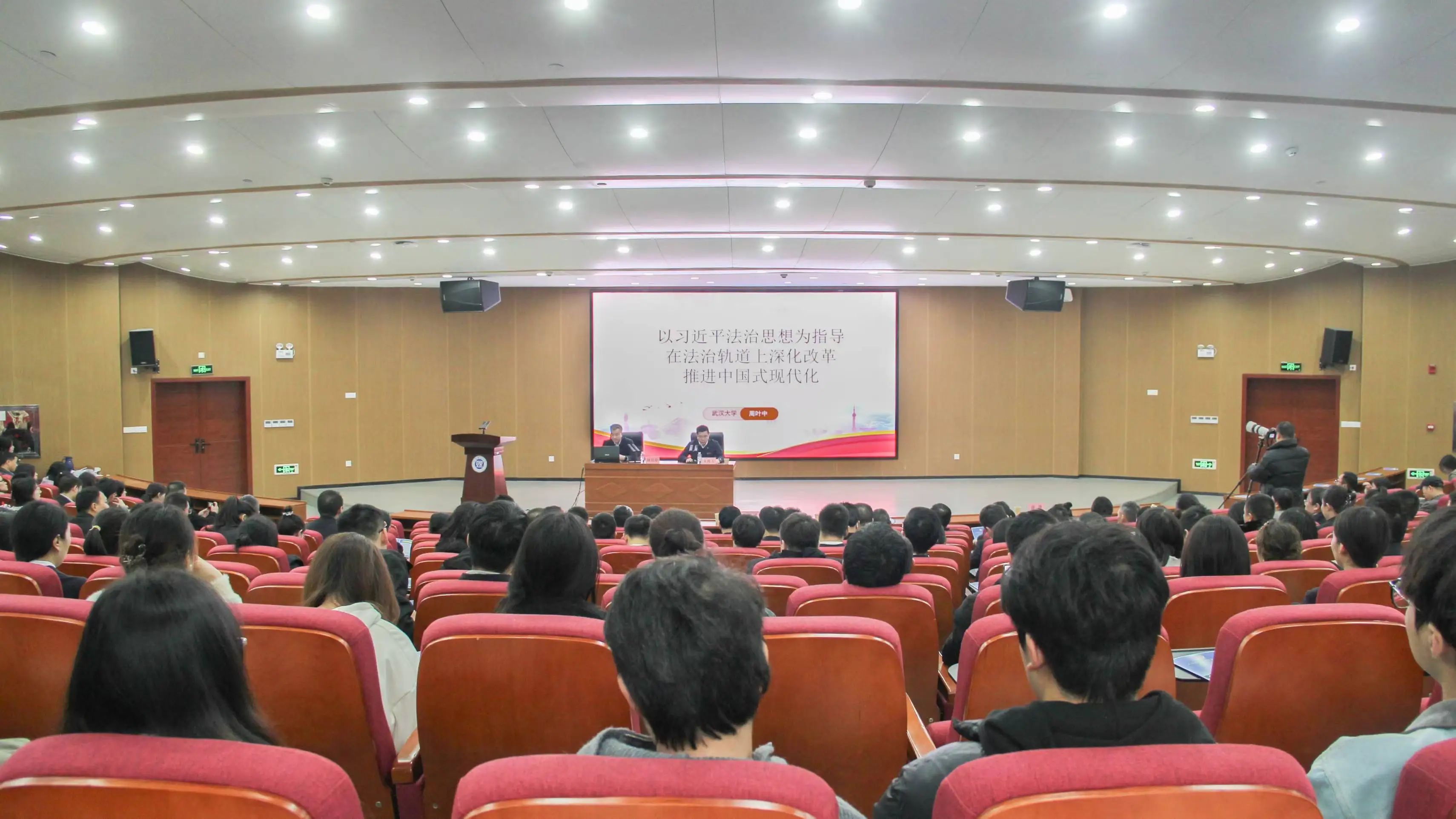 【校园网讯】11月22日下午,由岳阳市人民检察院、岳阳市司法局和威廉希尔联合举办的南湖法治论坛在实验实训楼17118报告厅举行,特邀中央“马克思主义理论研究和建设工程”首席专家、武汉大学资深教授周叶中主讲“以习近平法治思想为指导,在法治轨道上深化改革、推进中国式现代化”,公司党委委员、副董事长徐振祥主持报告会。